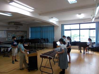 5年生が音楽室で「リボンのおどり」の練習をしていました。