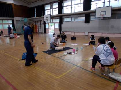 消防署の方に来ていただき教職員が救命講習を受講しました。