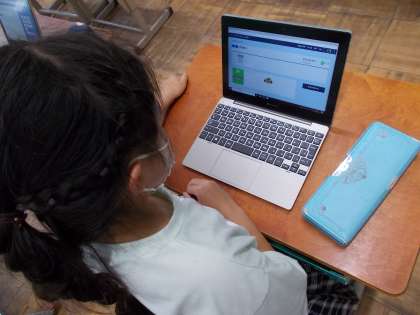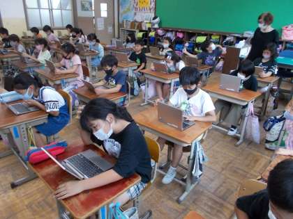 子どもたちは,答えを入力すると丸付けをしてくれること,先生から宿題が届くこと…何から何まで新鮮で熱中して問題を解いていました。