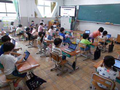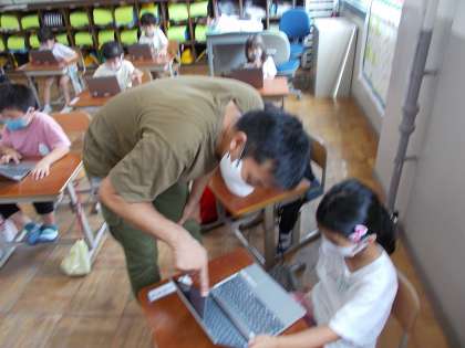 1年生の教室から「ピーコーン!」という音がたくさん聞こえてきました。