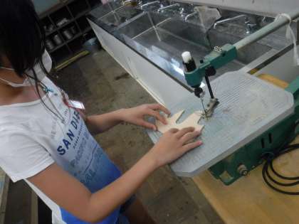 子ども達は初めての電動糸のこに興味を持ちながら,板を自分の思う形に切ることができていました。