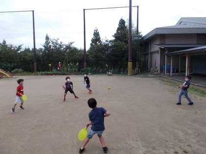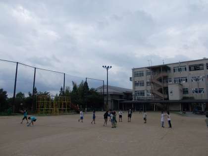 すっきりとした天候とまではいきませんが,運動場を使うことができました。