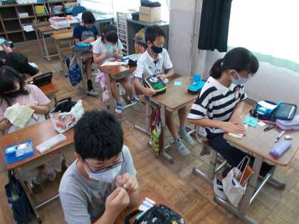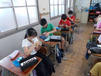 家庭科の裁縫で波縫い・半返し縫い・本返し縫い・かがり縫い等の練習をしてきました。