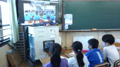 そして,児童会の人たちは放課後にも役割がありました。学校を代表して,旭丘中・待鳳小・鳳徳小・鷹峯小の交流会にZOOMで参加しました。