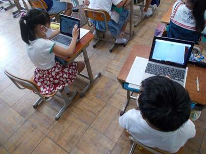 この日は,ロイロノートを使ってみんなの迷路を共有し,遊んでみました。