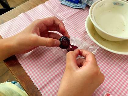 「このぶどうの名前は何ー?」「巨峰!知ってる!食べたことあるよ」「もっと食べたいな〜」「2粒じゃ少ないよ」「おいしい!」「また出してね」と,みんなとてもいい笑顔でほおばっていました。