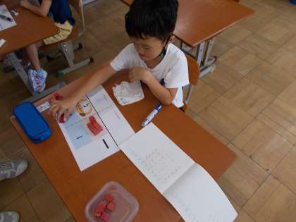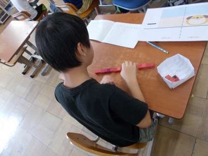 子どもたちは,ブロック操作を通して答えを求めていました。