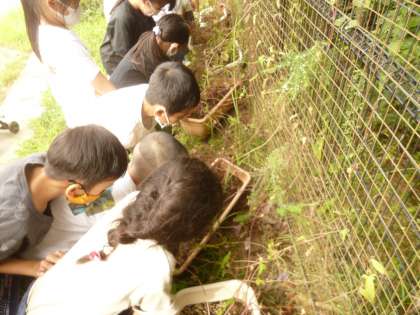 クイズをした後は,教室を出て,運動場で生き物探しをしました。小さい昆虫などをみつけて楽しく活動ができました。