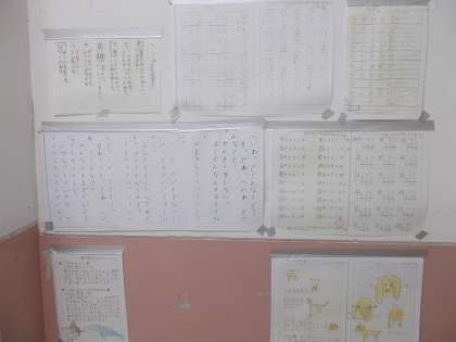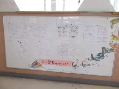 廊下を歩いていると教室の前に自主学習ノート等が掲示してあります。