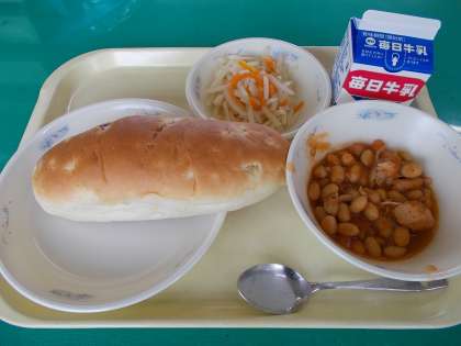 この日は,ミルクコッペパンがおさつパンに変更となっています。