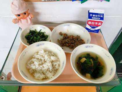 子どもたちは教室でおからさば丼の具をごはんにのせて食べました。「あまい味がしておいしかったよ」「噛んだらじゅわっておだしがでてきてびっくりした」「ごはんもっと食べたかった」と感想を伝えてくれました。
