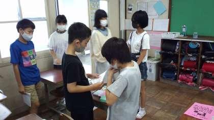 学習したことを生かして,自分の夏休みを友だちに伝える活動をしました。動作,目線,表情などにも気にして相手を意識して取り組みました。