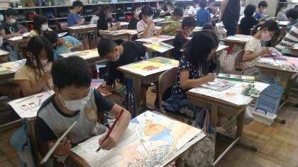 『ふしぎなコウモリガサ』のお話をきいて,想像した場面を絵に表しました。