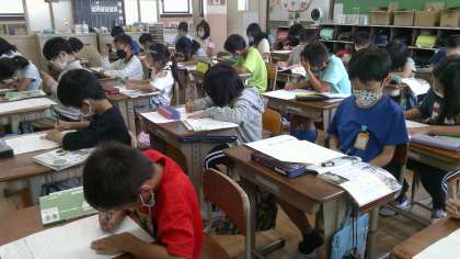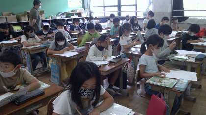 今日は「海をこえて」という教材で,日本の盆栽とフランスのガーデニングを見比べてそれぞれのよさを考えました。