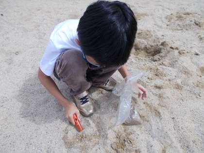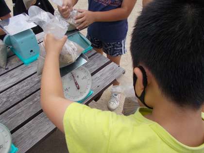 砂場に行き1kgを体感しました。