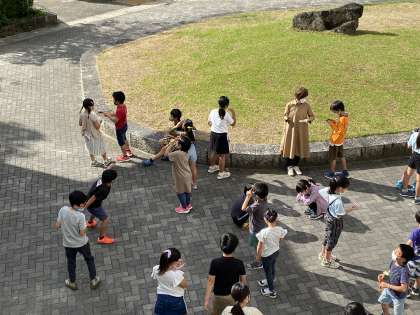 子どもたちは時間がたつごとに動く太陽の位置を遮光版を使い,興味を持って観察することができていました。