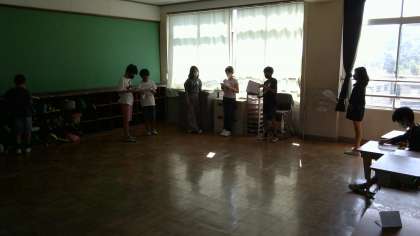 5年生のキャンプファイヤー係の人たちは,準備を進めていました。