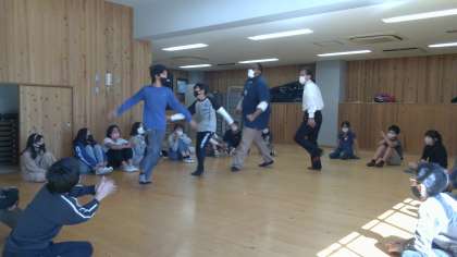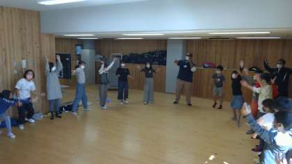 ALTとキャンプファイヤーで行った「鬼のパンツ」「花野果さん」「ポイントたまればあなたもホニャラララーゲーム」を英語バージョンにアレンジして楽しみました。