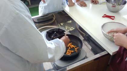 6年生は今年度初めての調理実習に取り組みました。朝食に1品を足すといいなという料理を作りました。「いろどり炒め」は色や栄養バランスの摂れた料理なので,お家でもぜひ作ってみてはどうでしょうか。