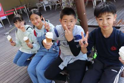 多くのグループがソフトクリームを食べています。
