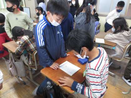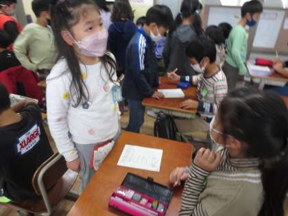 覚えた九九をいろいろな学年の人に聞いてもらっています。