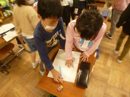 ひきざん(2)で,今日は〇の図を使って,文章問題を解きました。最初はどのようにかいてよいのかわからなかった子ども達も,友達と学びあいをしながら,少しずつかけるようになりました。