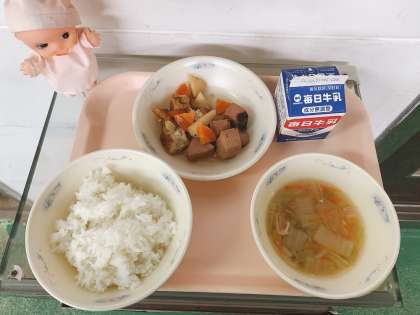 今日は「生ぶしと厚あげの煮つけ」でした。厚あげは,4つ切りにして,味がしっかりしみるように炊きました。なまぶしは,今年3回目ということもあり,1年生も食べ慣れてきているようでした。お残しもほとんどない状態で,給食室にもどってきましたよ。