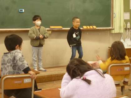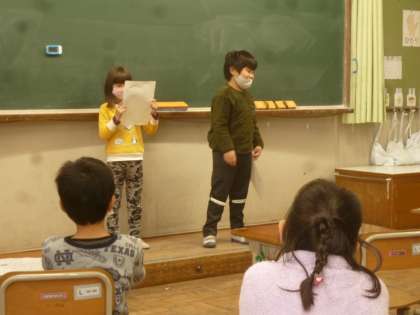 国語の時間に「ともだちのこと しらせよう」の発表会をしました。ペアになった友達のことをインタビューして,その人の好きなことをクラスのみんなに紹介する学習です。