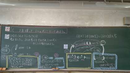 算数科「式と計算」では,「べつべつに」「1組にして」の考え方を( )を使って表すことを考えました。