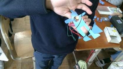 豆電球を使ったおもちゃを作ってみました。