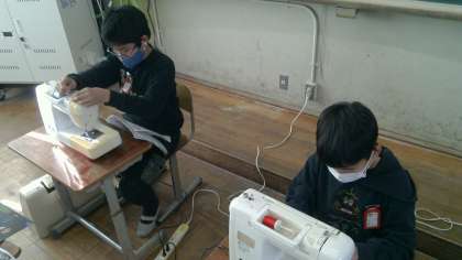 この日は,下糸を入れ,上糸をかけ,下糸を引き出す練習をしました。