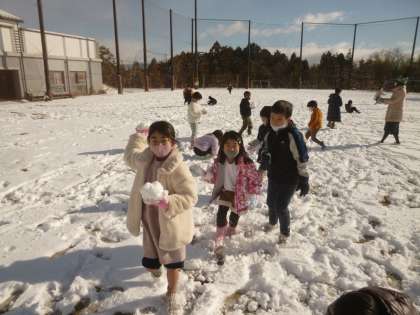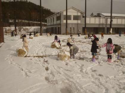 今朝の鷹峯小学校は一面銀世界でした。さっそく外にでて,みんなで雪だるまをつくったり,雪合戦をしたりと「ふゆとともだち」になることができました。「来週もたくさんふってくれるかな。」と子ども達はわくわくしています。