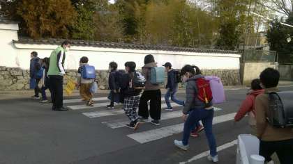 この日から4・5年生が中心となり集団登校をしています。