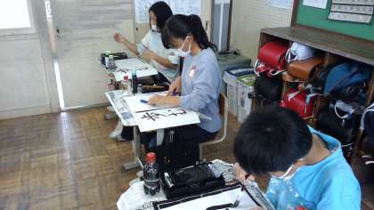 書写の学習をしました。6年生最初の授業は『歩む』です。文字の通り,どんな歩みをしてくれるのでしょうか。思いや気持ちを込めながら,集中して書きました。来週の参観で掲示していますので,ぜひご覧ください。