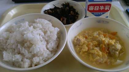 「親子煮」は出汁のうま味とふんわりとした卵がご飯とよく合う献立です。