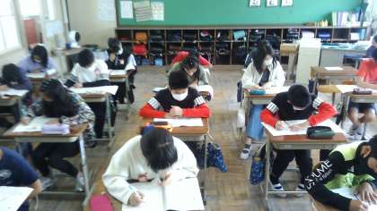 6年生は「全国学力学習状況調査」に取り組みました。今年度は国語・算数・理科の3科目です。45分間集中して取り組めていました。