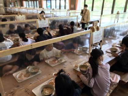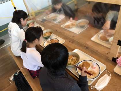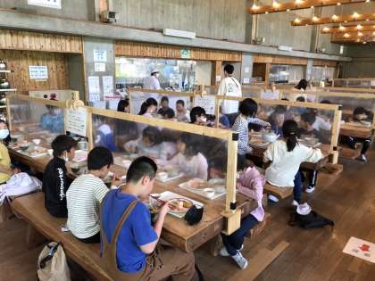 昼ご飯だけでなく広い食堂にもテンションが上がっていました。