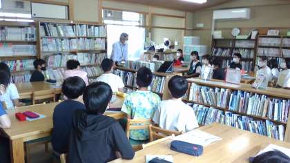 国語の学習では図書館オリエンテーションを奥田先生にしていただきました。6年生にはブックトークの方法や奥田先生のおすすめの本の紹介をしていただきました。