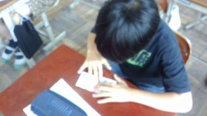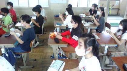 お迎えフレンドリー集会(1年生を迎える会)に向けて準備をしています。今日は何やらみんなで作っているようです。前には担当の友だちが作り方や注意点を説明したり,実際にみんなのところに行って教えています。