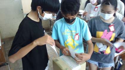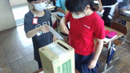 社会科の学習では政治について学びました。そのまとめとして模擬選挙を行いました。