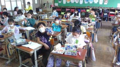 この日は「もっと速くモーターを回したり,豆電球をもっと明るくするにはどうすればよいだろう。」というめあてを立て,「電池を2つにしたらよい」という予想のもと実験を行いました。