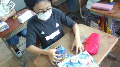 つなぎ方によって,モーターが速く回ったり,回らなかったり,または電池1つのときと変わらなかったりしました。