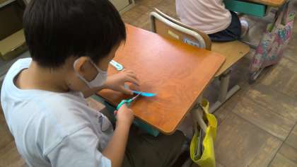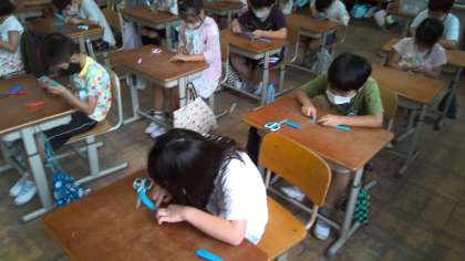自分が10cmと思う長さでテープを切ったり,身のまわりから見つけだしたりして,10cmの長さがどれくらいなのかを体感しました。10cmくらいのものが意外と教室にたくさんあり,驚いていました。