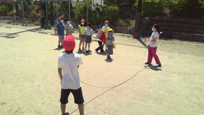 今日は今年度初めてのフレンドリー遊びでした。各グループのリーダーが中心になってみんなが楽しめそうな遊びを考えていました。外と中で分かれて遊びましたが,運動場で遊ぶグループは暑い中楽しそうな声が聞こえてきました。
