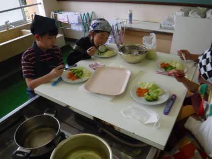 本日はブロッコリー・キャベツ・人参をゆでてサラダにしました。