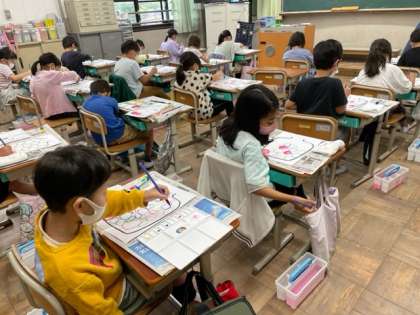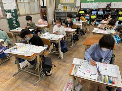 はじめて水彩絵の具を使いました。筆の使い方や水加減に気をつけながら,色を塗ることができました。