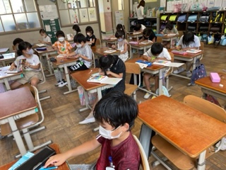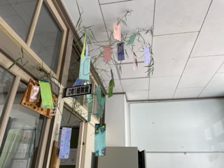 立派な笹をいただいたので、みんなで短冊を書きました。