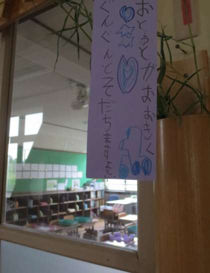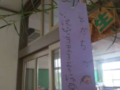 1年生「七夕の笹におねがいごとを・・・」