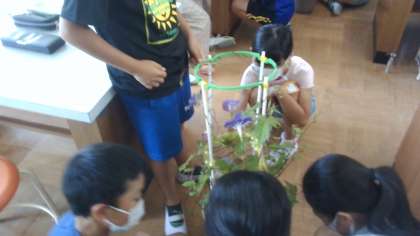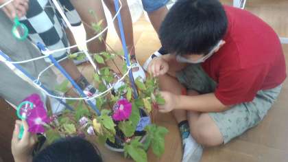 つぼみの時は花粉がついておらず、花が開いた後には花粉がついていることから、花が開いた直後に朝顔は受粉することを考察していました。