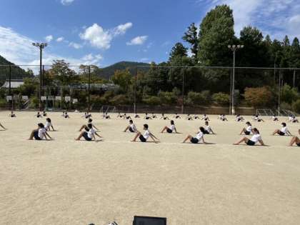 スポーツフェスティバルに向けての練習を今日も行いました。今日は1年生から4年生までの全員が演技の見学に来ました。本番モードです。意識をさらにもう1段階押し上げてラストスパートをかけてほしいと思います。